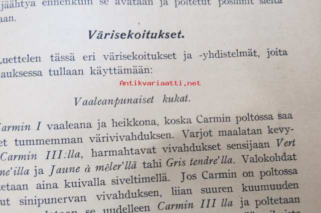 Posliinimaalauksen käsikirja, mukana 2 painokuvaa ja 14 yksipuolista lehteä, joissa malleja "vasta-alkajille"