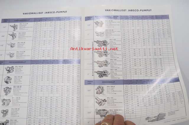Jabsco pumput (itse imevät) -myyntiesite / sales brochure