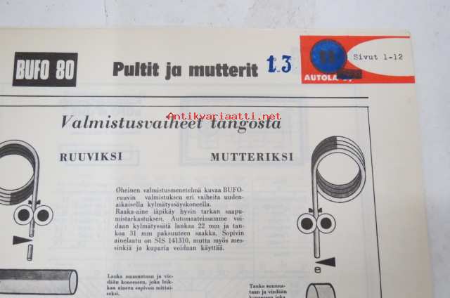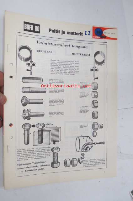 Bufo 80 pultit ja mutterit - valmistusvaiheet tangosta ruuviksi / mutteriksi, kuusioruuvit / mutterit, kruunumutterit, peltiruuvit -myyntiesite / sales brochure