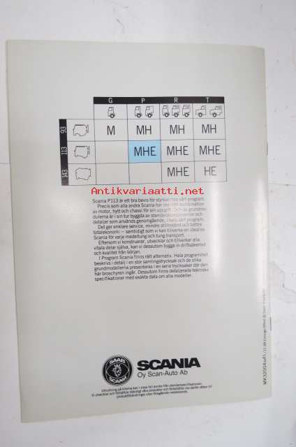 Scania P113 1989 -myyntiesite, ruotsinkielinen / sales brochure, in swedish