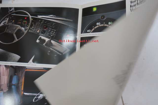 Volvo kuorma-autojen tekniset tiedot -kansio, sisältää myös tyyppikatsastustodistuksia, huoltotiedotuksia ym. ison määrän