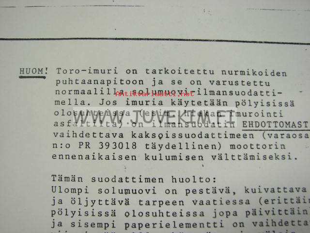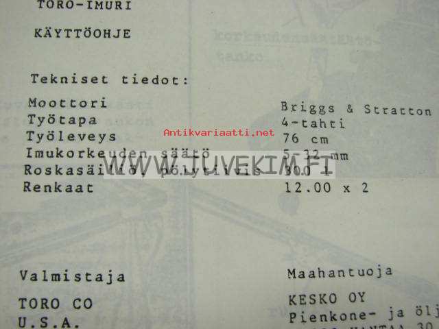 Toro imuri -käyttöohje
