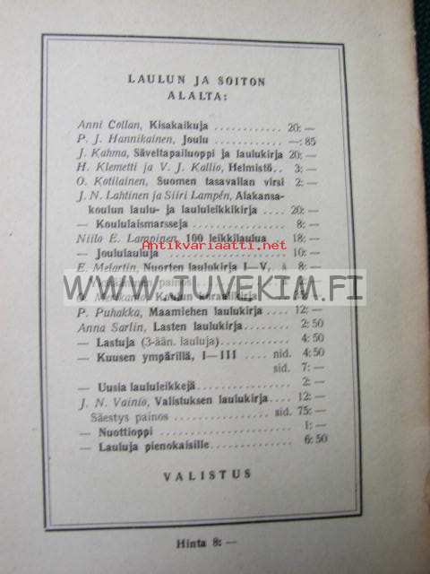 Nuorten Laulukirja 1930. Vihko V. Op 140.