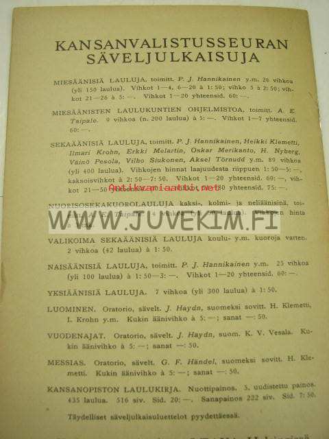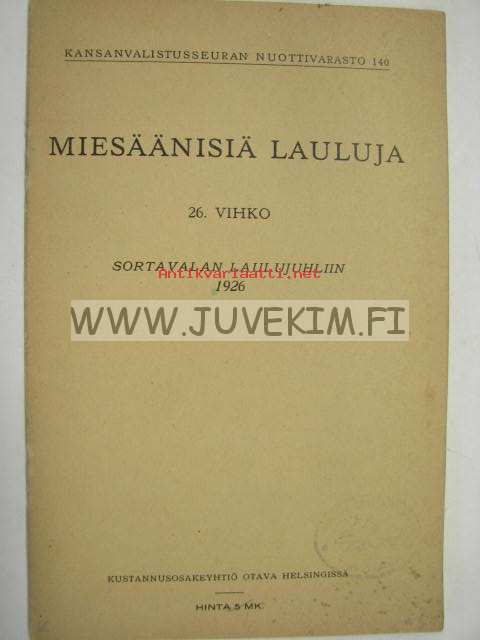 Kansainvalistusseuran nuottivarasto 140, 1926