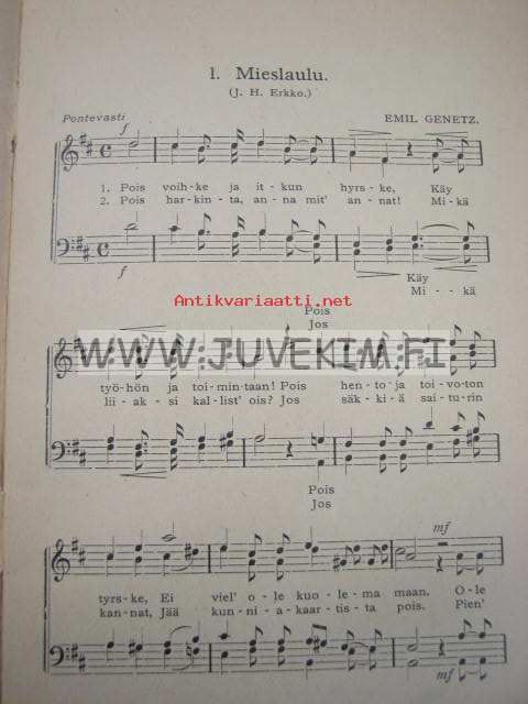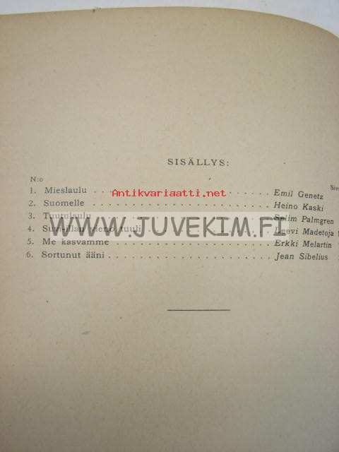 Miesäänisiä lauluja Sortavalan laulujuhliin 1926.