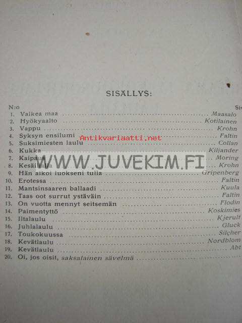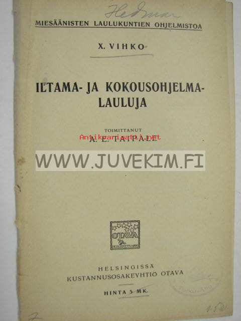 Iltama- ja kokousohjelmalauluja. Miesäänisten laulukuntien ohjelmistoa. 10 vihko