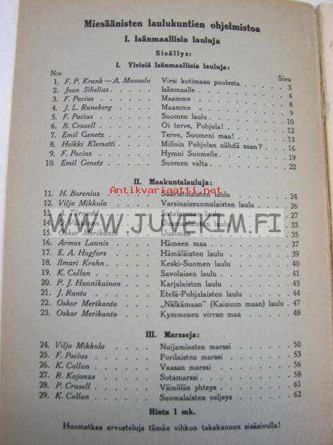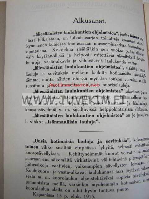 Uusia kotimaisia lauluja ja sovituksia. Miesäänisten laulukuntien ohjelmistoa. 2. vihko