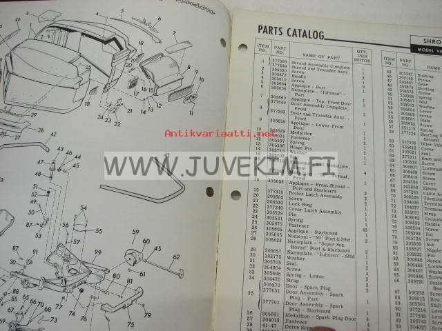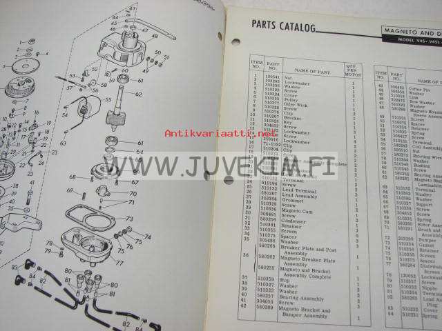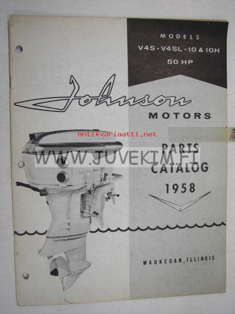 Johnson 50 hp models V4S - V4SL - 10 & 10H outboards 1958 parts catalog -varaosaluettelo