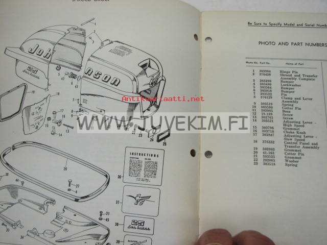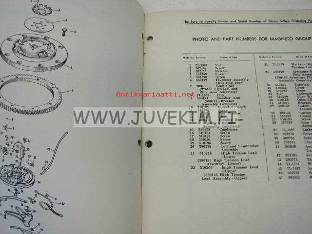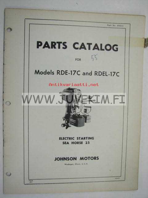 Johnson 25 hp models RDE-17C, RDEL-17C outboards 1955 parts catalog -varaosaluettelo