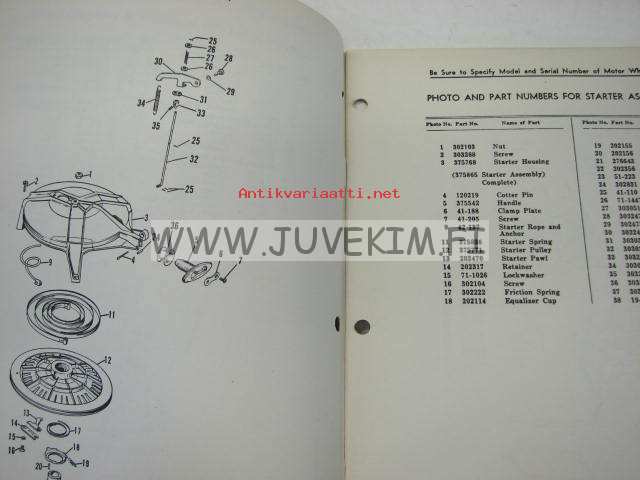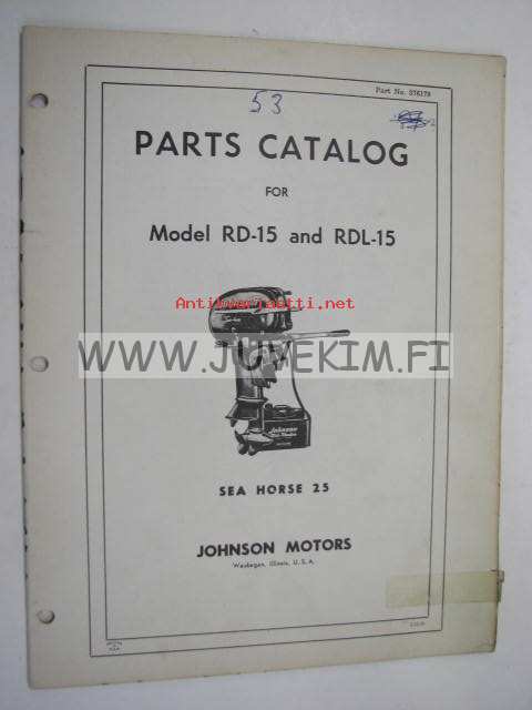 Johnson Sea Horse 25 hp models RD-15 and RDL-15 outboards 19?? parts catalog -varaosaluettelo