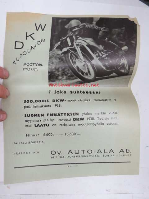 DKW - Auto Union moottoripyörät - 1 joka suhteessa -myyntiesite / sales brochure