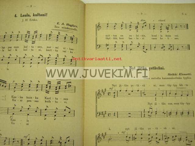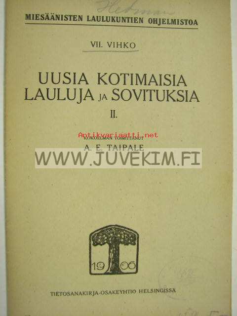 Uusia kotimaisia lauluja ja sovituksia. Miesäänisten laulukuntien ohjelmistoa. VII vihko