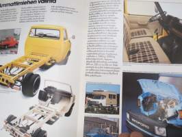 Volvo kuorma-autojen tekniset tiedot -kansio, sisältää myös tyyppikatsastustodistuksia, huoltotiedotuksia ym. ison määrän