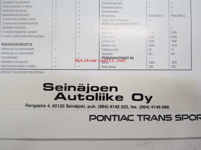 Pontiac Trans Sport -myyntiesite / sales brochure
