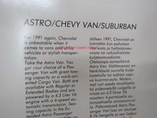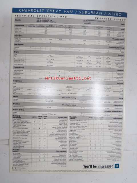 Chevrolet Chevy Van Suburban Astro -myyntiesite / sales brochure