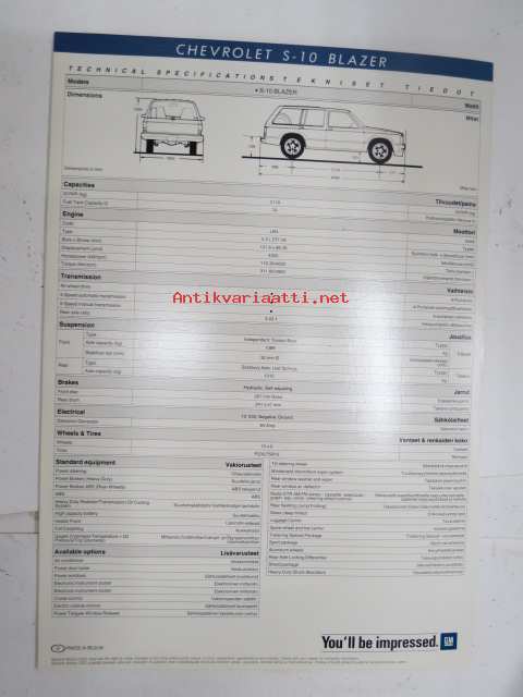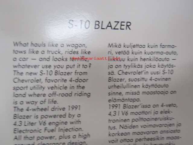 Chevrolet Blazer S-10 -myyntiesite / sales brochure