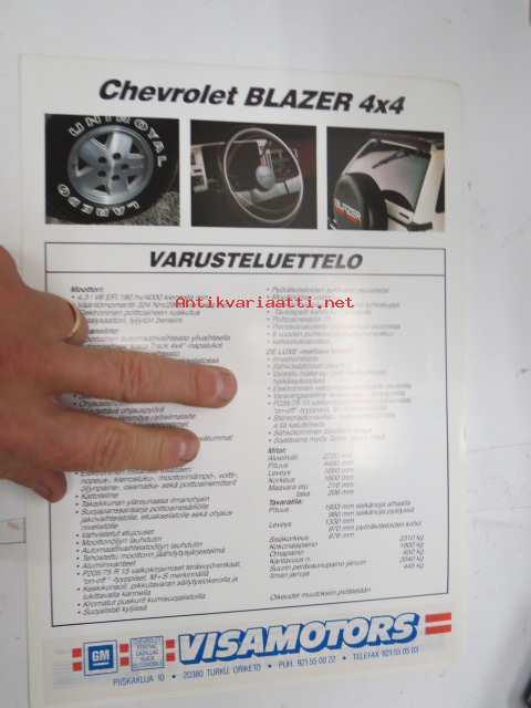 Chevrolet Blazer 4 X 4 Herrasmiesmaasturi -myyntiesite / sales brochure