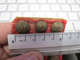 Valtionrautatiet VR - vanhempi nappisarja, 12 kpl virkapuvun nappeja (pienikokoisia, halkaisija 15 mm)