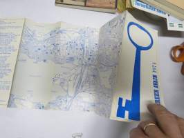 Tampereen avain 1974 -esite, sisältää kartan ja tietoa kaupungista mm. ravintolat, diskot, elokuvat, nähtävyydet ym.
