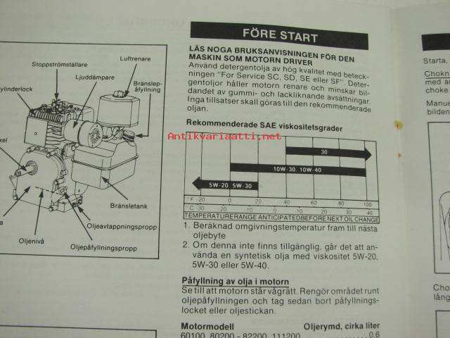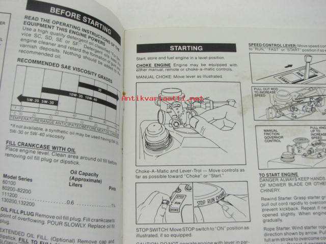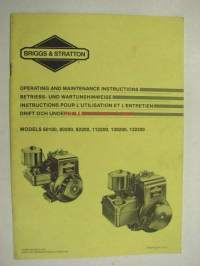 Briggs & Stratton models 60100, 80200, 82200, 112200, 130200, 132200 operating and maintenance instructions -käyttö- ja huolto-ohjekirja englanti, ruo