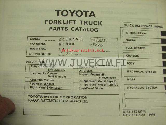 Toyota forklift 02-5FD28,30 parts catalog -haarukkatrukki varaosaluettelo