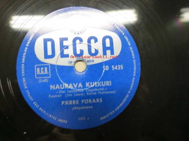 Decca SD 5435 Pärre Förars yhtyeineen Naurava kulkuri / Vihreällä niityllä -savikiekkoäänilevy / 78 rpm record