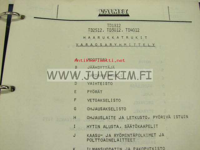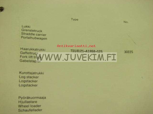 Valmet TD1812S-A1858-S25 Haarukkatrukki (nr 30225) -varaosaluetttelo