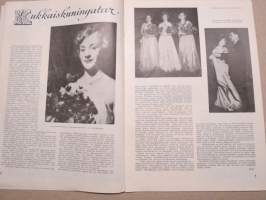 Eeva 1950 nr 7 Heinäkuu..., Kukkaiskuningatar, Öinen Pariisi, Kaikki naiset ovat samanlaisia, Espanjalaista hurmaa, Prinsessa Elisabethin Lontoo-koti, ym.