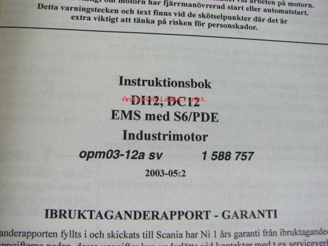 Scania Industrial diesels DI12, DC12 EMS med S6/PDE instruktionsbok -käyttöohjekirja ruotsiksi