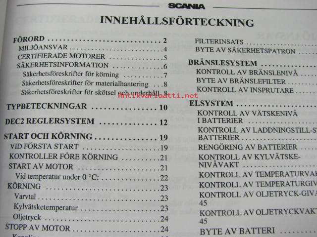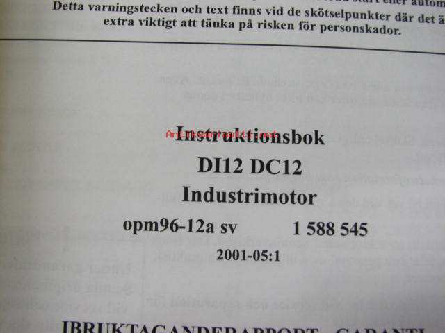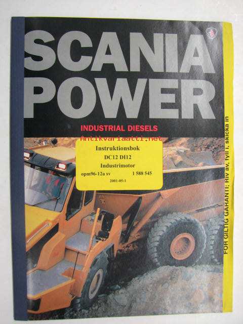 Scania Industrial diesels DI12, DC12 instruktionsbok -käyttöohjekirja ruotsiksi