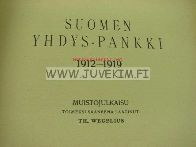 Wegelius Th., Suomen Yhdys-Pankki, 1922 21 x 30 cm kirja.