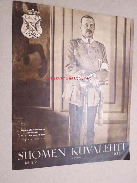 Suomen Kuvalehti 1933 nr 22, kansikuva Uusi sotamarsalkka kenraali C.G. Mannerheim, Kun lahnan päähän kasvaa sammal, Suomalaisen teollisuusmiehen suurtyö, ym.