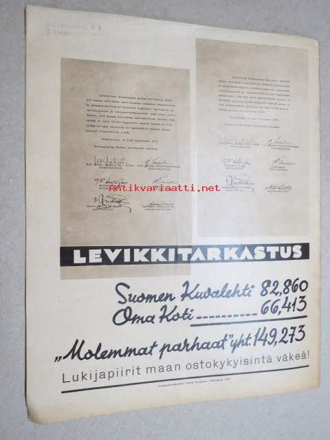 | Saatavilla | 0 kpl (Huom. tuote on myyty! / Sold out!) | | Julkaisuvuosi | 1933 | | Kunto | K2 | | Sidonta/painoasu | Lehti | | Kielet | Suomi |