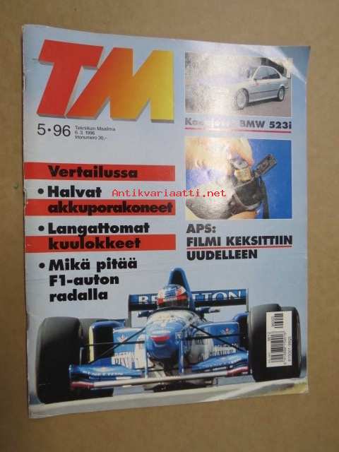 Tekniikan Maailma 1996 nr 5, Koeajossa BMW 523i, Renault Next -Tulevaisuuden tulkki, Kaikki valmiina, Tallinvaihtajien ja turvallisuuden vuoksi, ym.