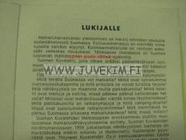 Saatavilla 1 kpl Julkaisuvuosi 1959 Sivuja 79 Painos 1. Kunto K2 Liitteet puuttuvat Sidonta/painoasu Nidottu (pehmeäk.) Kielet Suomi