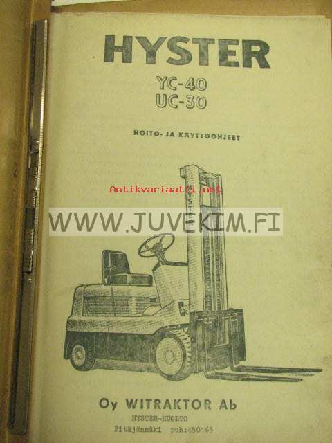 Hyster YC-40, UC-30 haarukkatrukki -hoito- ja käyttöohjeet