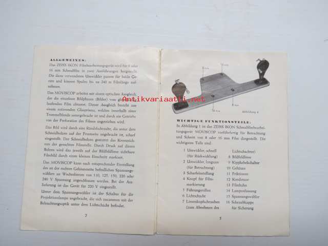 Zeiss Ikon Moviscop filmileikkauslaite -myyntiesite / sales brochure, in german