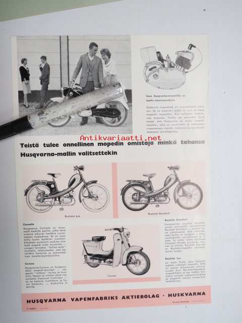 Husqvarna Corona, Roulette Lyx, Roulette Standard -myyntiesite (1959) Mopedi