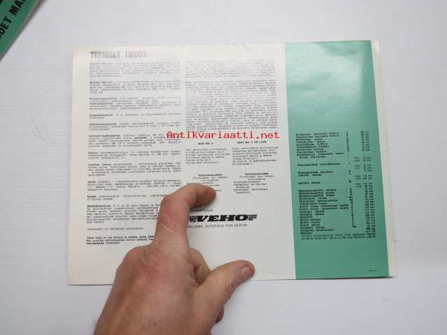 Volvo kuorma-autojen tekniset tiedot -kansio, sisältää myös tyyppikatsastustodistuksia, huoltotiedotuksia ym. ison määrän