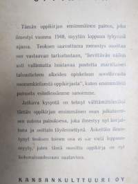 | Saatavilla | 1 kpl | | Julkaisuvuosi | 1949 | | Sivuja | 259 | | Painos | 2. korjattu ja täydennetty | | Kunto | K2 | | Sidonta/painoasu | Nidottu (pehmeäk.) | | Kielet | Suomi |