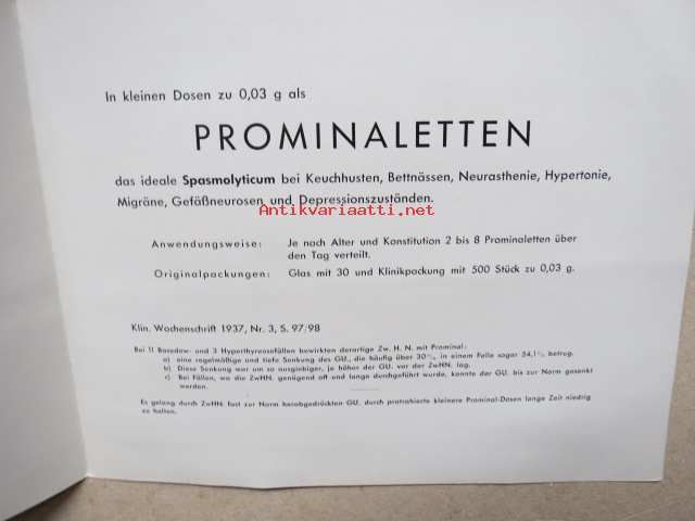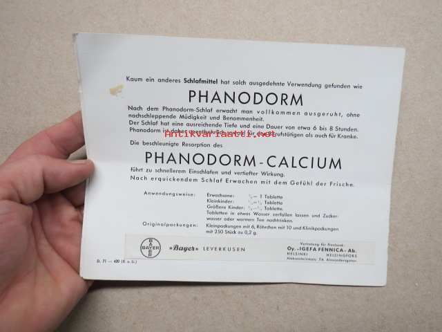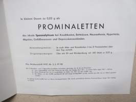 Prominal - Prominaletten / Phanodorm - Phanodorm-Calcium / Bayer Leverkusen - Oy Igefa-Fennica Ab -lääkemainoskortti, 1940-luku