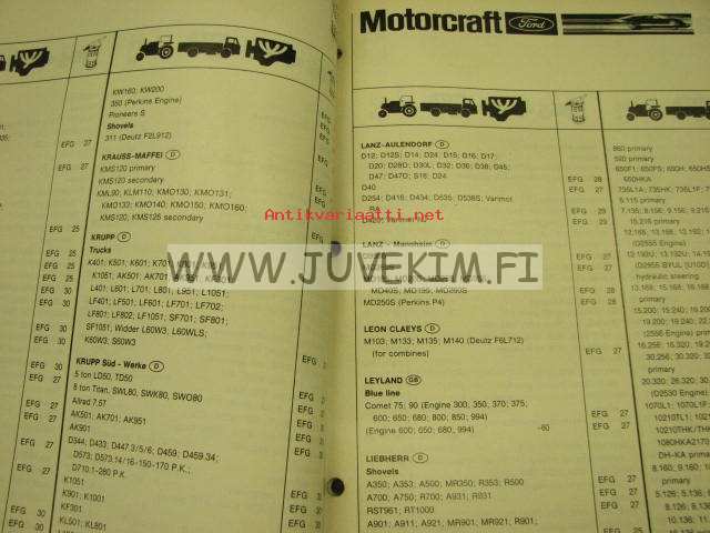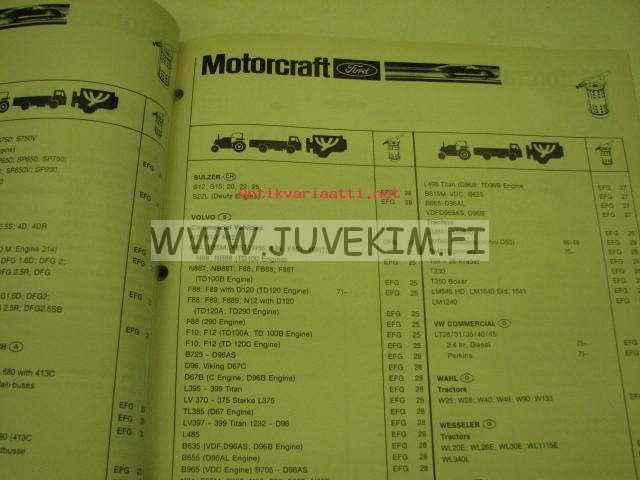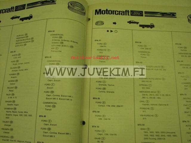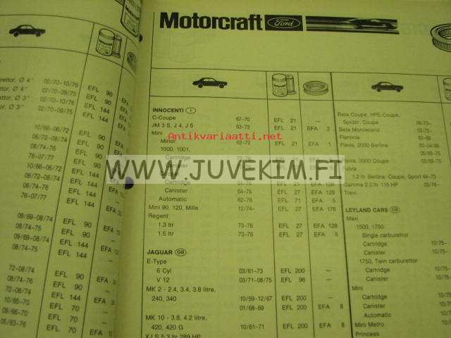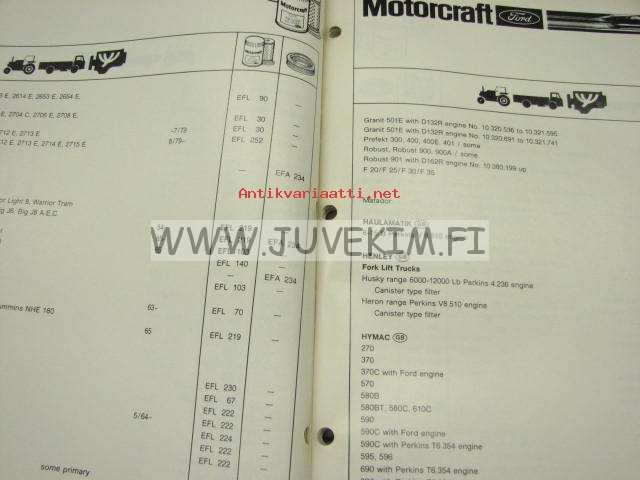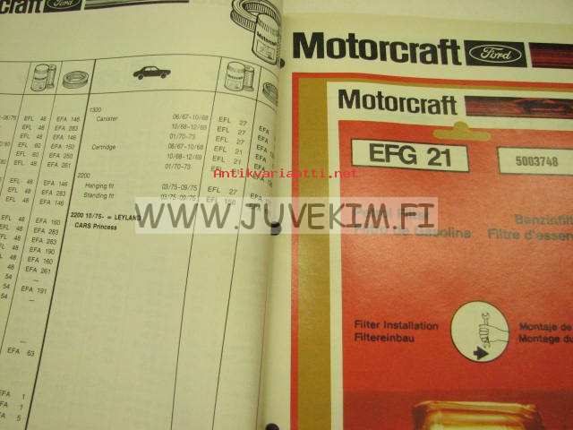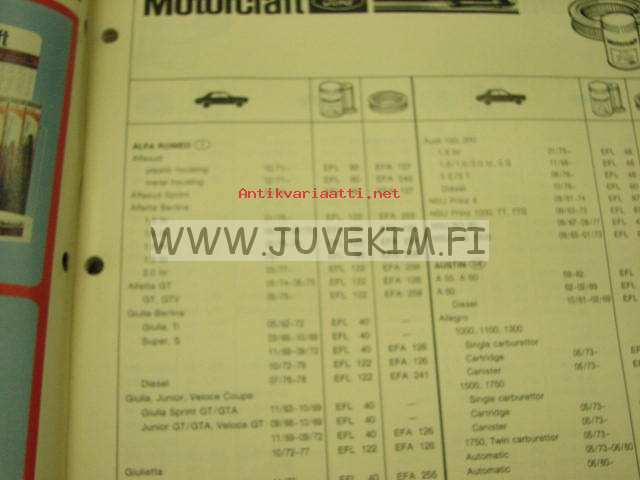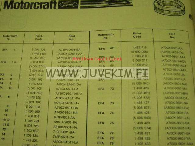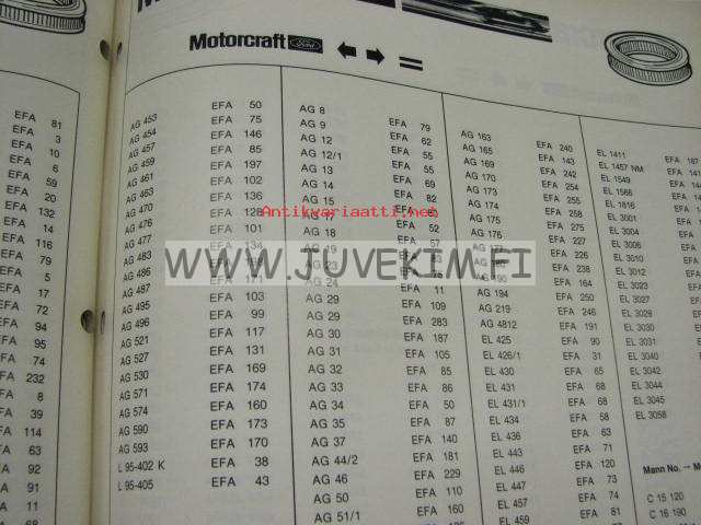 Motorcraft ilman- ja öljynsuodattimet 1982 -suodatinluettelo