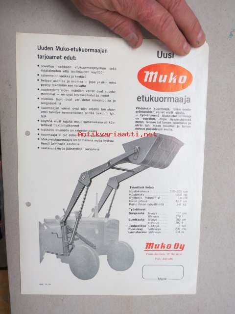 Muko etukuormaaja / traktorikuormaaja + työvälineitä -myyntiesite