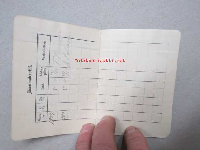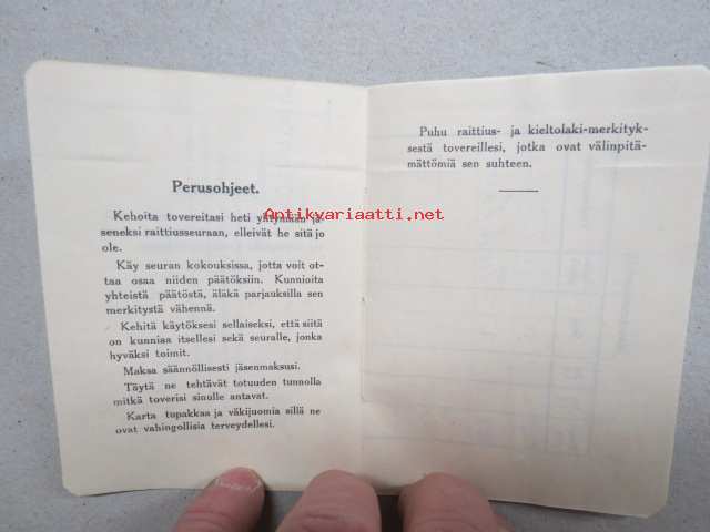 Raittiusseura Taisto III -jäsenkirja Artturi Ranta, Masku Villilä