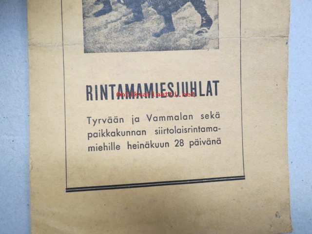 Rintamamiesjuhlat - Tyrvään ja Vammalan sekä paikkakunnan siirtolaisrintamamiehille 28.7.1940 -käsiohjelma