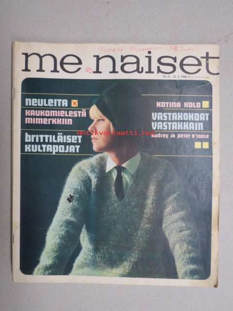 Me Naiset 1966 nr 8, 23.2.1966, Audrey Hepburn haastattelu (Osvaldo Pagani, 6 sivua), Hän käyttää huumausaineita, Richard Estrada Suomessa, Englannin kultapojat ym.