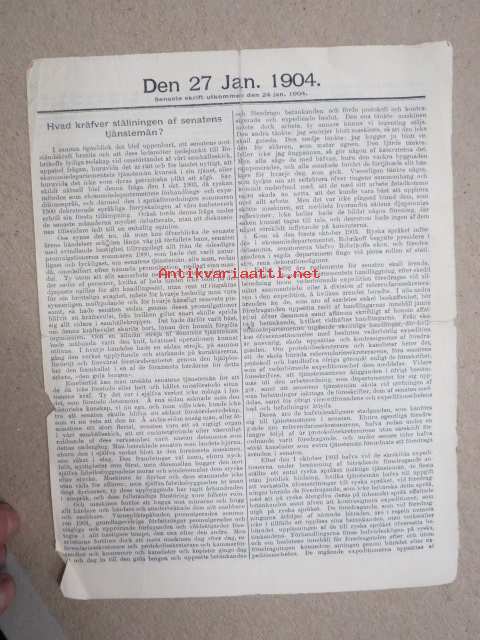 Den 27 Jan. 1904 -sortokauden aikainen Tukholmassa julkaistu lehtinen