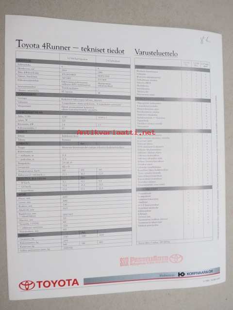 Toyota 4 Runner -myyntiesite / sales brochure