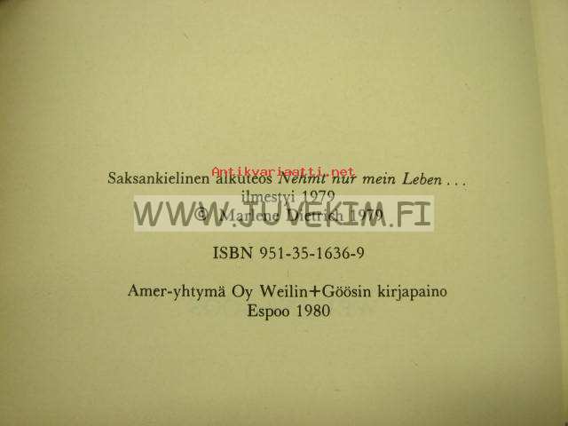 Dietrich Marlene, Weilin & Göös, 1980 14 x 21 cm kirja.