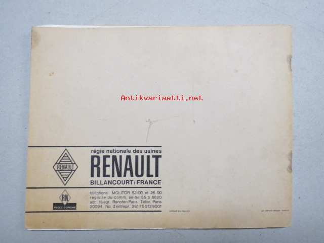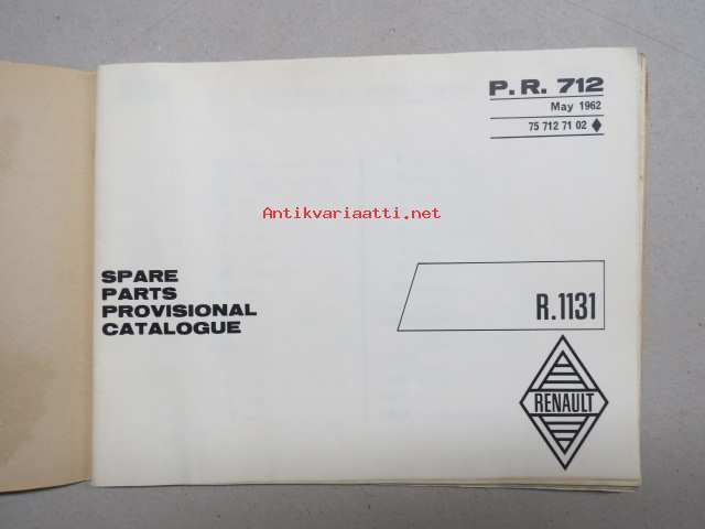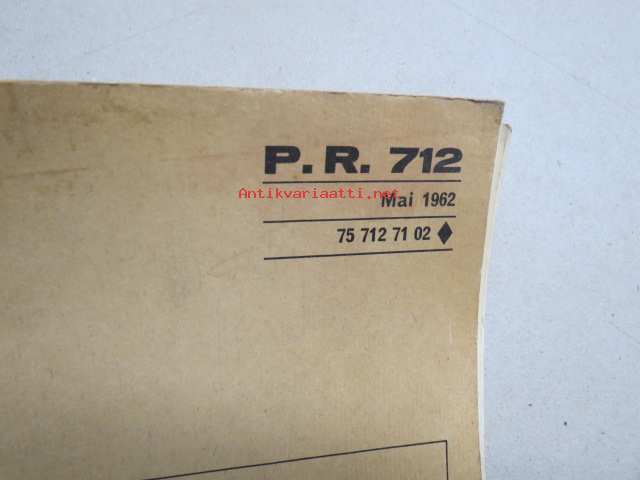 Renault R.1131 - P.R.712 Catalogue provisoire de piéces de rechange -parts catalogue, supplementary / varaosaluettelon lisäosa